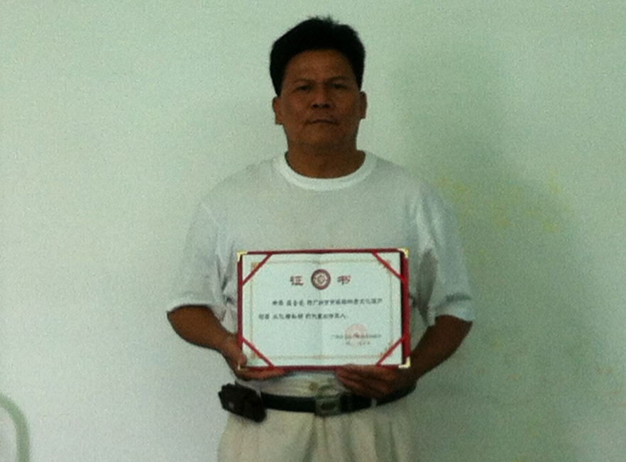 温金能(1956- ),从化市城郊街北星村人,小学学历。1970年,14岁的温金能开始学习猫头狮,师承温乃扬。在继承前辈的一些传统套路的同时也进行了创新,基本动作也演变成现在四个完整套路。1986年,30岁的温金能开始授徒,到现在已经有20位徒弟,组织猫头狮队进行排练、演出和参加各种比赛,并取得较好成绩,2002年,获得从化市猫头狮比赛金奖。现为从化猫头狮第三代传承人,第三批广州市非物质文化遗产项目从化猫头狮代表性传承人。